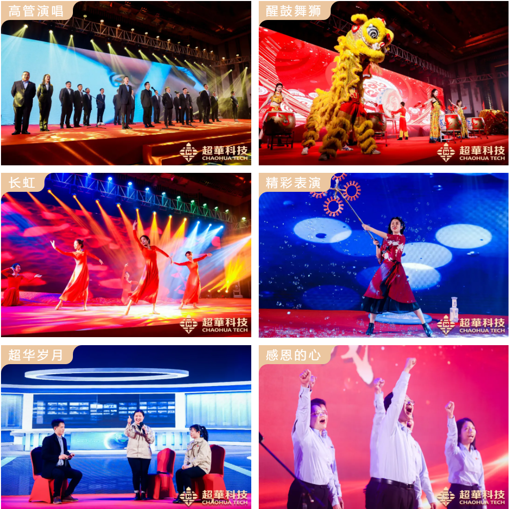 在晚宴期間,還開展了豐富多彩的文藝演出,醒獅鼓振奮人心,舞獅子神采奕奕,整個氣氛熱烈歡騰,意示著2022年超華科技虎虎生風。而《眾人劃槳開大船》的節(jié)目,各位高管演唱熱情非常,把整個慶典的氣氛推向了高潮。熱辣的舞蹈串燒,帶動了現(xiàn)場的歡快氛圍,《長虹》節(jié)目的震撼,讓人嘆為觀止,更寓意著公司股票長紅,高升不斷。最后由員工代表演唱的《感恩的心》,更是表達了全體員工與公司的深厚感情,為現(xiàn)場新添了溫馨的氛圍。