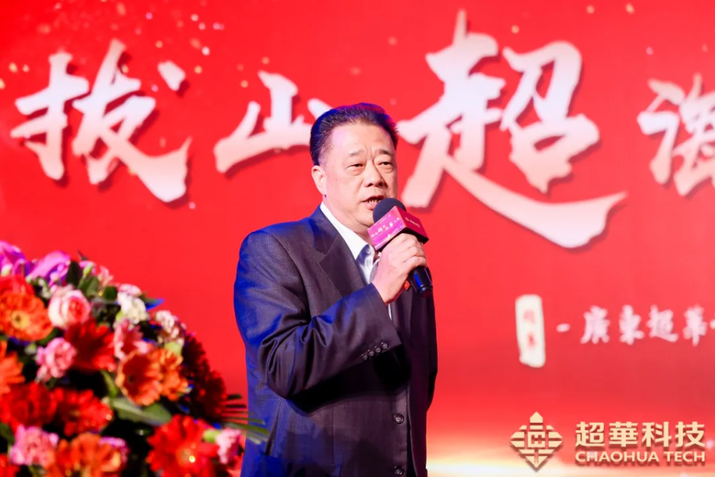 隨后董事長梁健鋒先生回顧了過往三十年的創(chuàng)業(yè)歷程,并對2021年所取得的成績作出了充分的肯定。特別贊賞了廣西超華項目全體超華人專業(yè)水準與拼搏進取的精神。最后董事長梁健鋒先生提出了超華科技要成為具有先進的工業(yè)體系及不受制于人的工業(yè)產(chǎn)業(yè)鏈的民族企業(yè)。更強調(diào)了超華科技將持續(xù)為民族的偉大復興事業(yè)作貢獻,賦予了此次慶典重要意義。